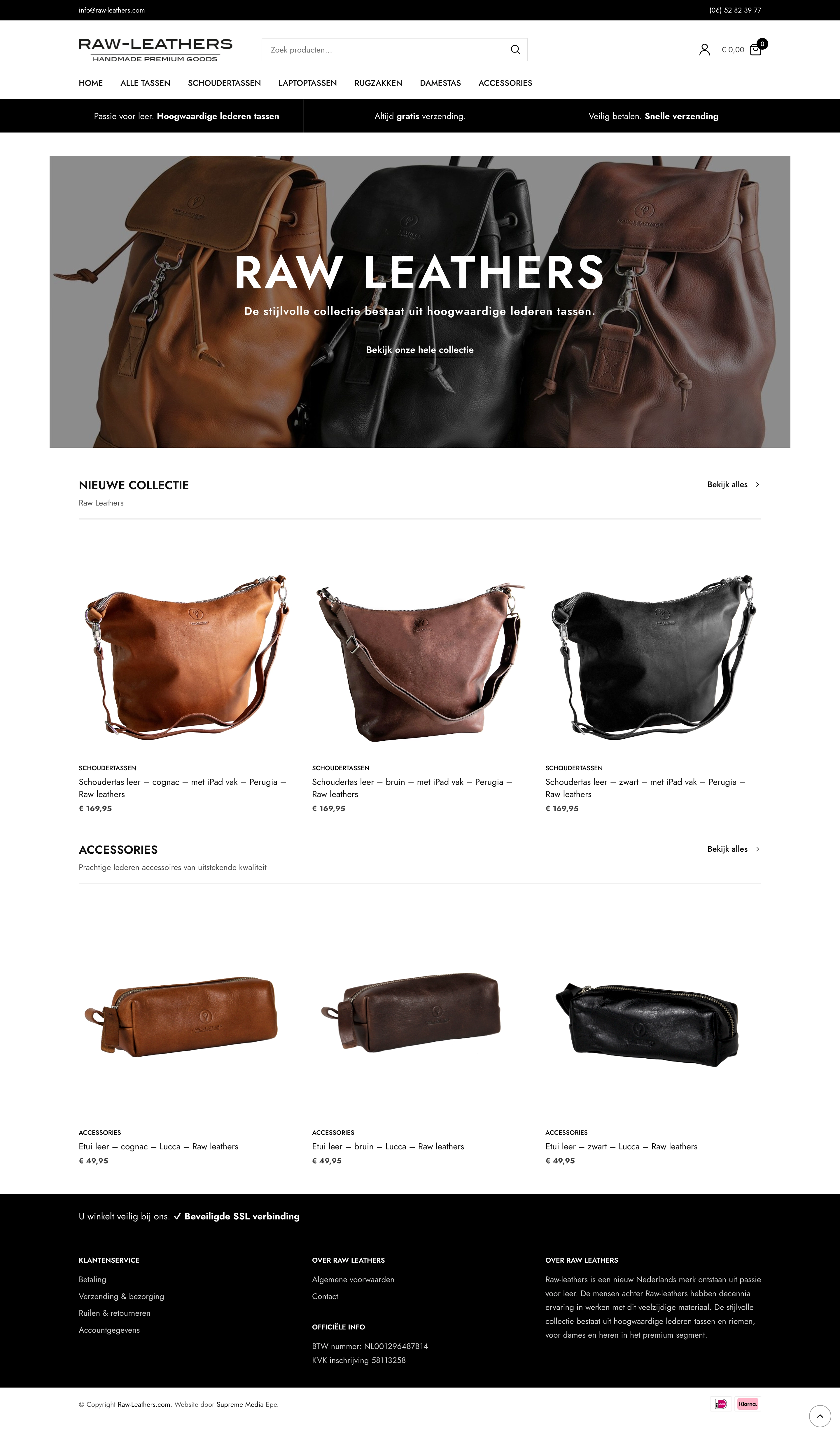 Raw-leathers is een nieuw Nederlands merk ontstaan uit passie voor leer. De stijlvolle collectie bestaat uit hoogwaardige lederen tassen en riemen, voor dames en heren. De webshop van Raw Leathers is gebouwd met WooCommerce (WordPress).